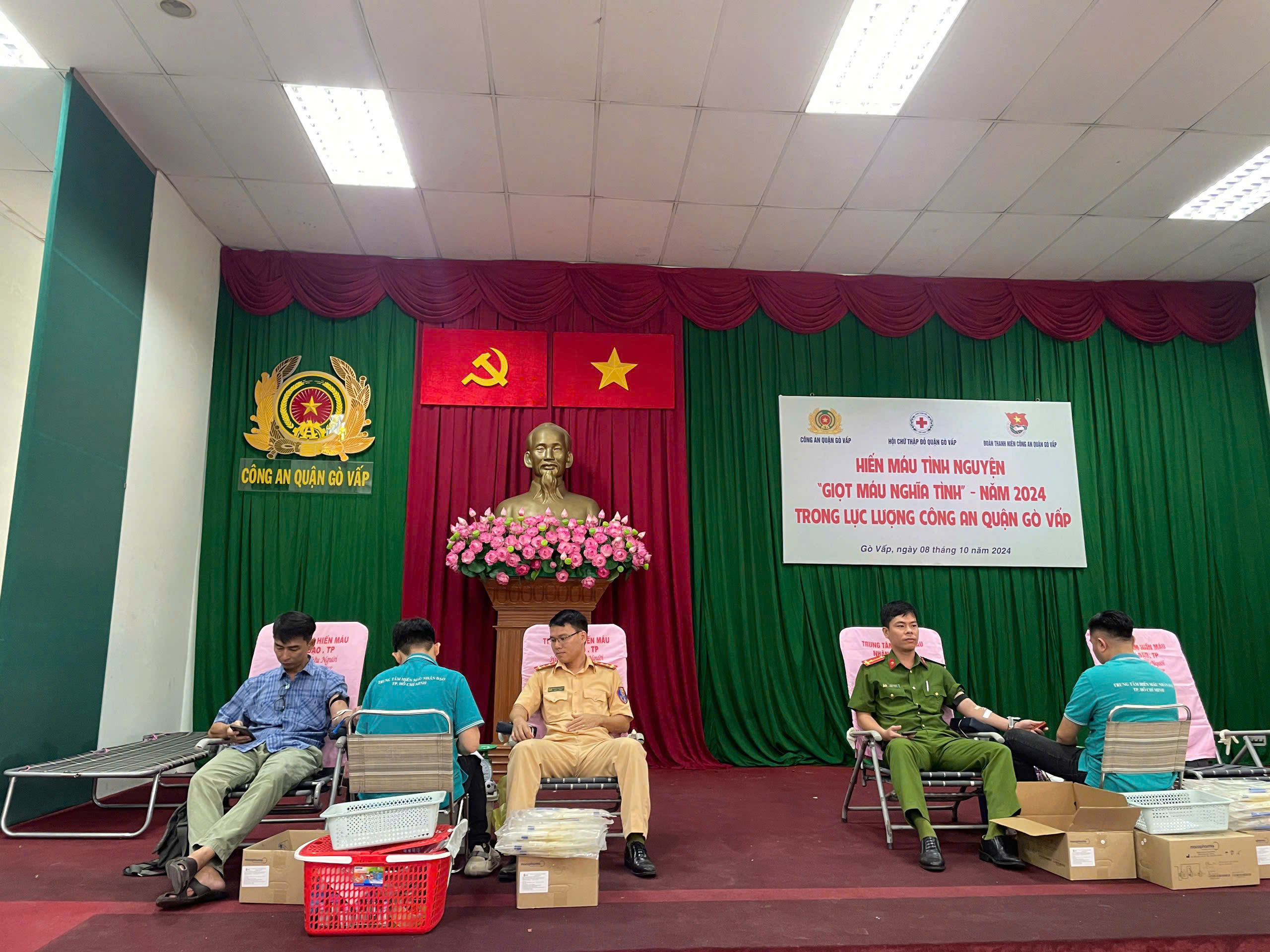 Sáng ngày 08/10/2024, Công an quận Gò Vấp phối hợp Hội Chữ thập đỏ quận Gò Vấp tổ chức chương trình hiến máu tình nguyện "Giọt máu nghĩa tình" năm 2024. Chương trình thu hút đông đảo sự tham gia từ các đoàn viên thanh niên Công an quận Gò Vấp. Chương trình hiến máu tình nguyện là hoạt động thường niên mang ý nghĩa nhân văn sâu sắc, thể hiện tinh thần xung kích, tình nguyện, chung sức vì cộng đồng của cán bộ, chiến sĩ, đoàn viên thanh niên Công an quận và Công an 16 phường thuộc quận Gò Vấp.